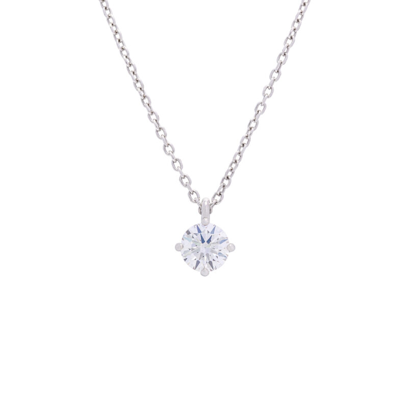 Shining claw prongs hold a dazzling round lab-grown diamond securely as it dangles from a smooth cable chain in this timeless and sophisticated piece of jewelry.