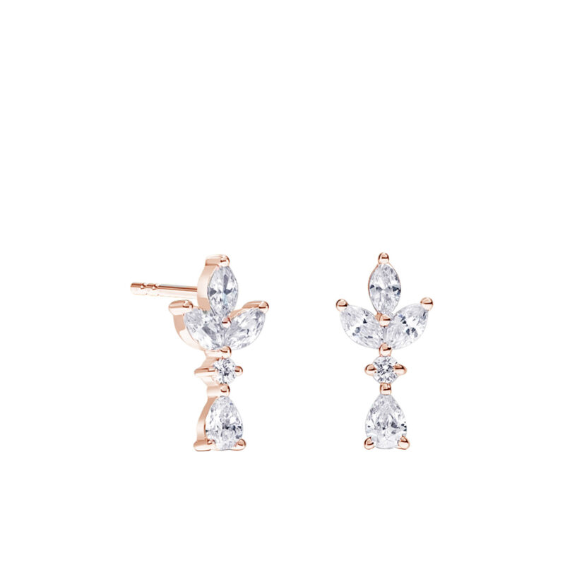 Striking drop earrings (with a total carat weight of 0,4ct) showcase a distinctive and captivating design created by the use of round, pear, and marquise-shaped diamonds.