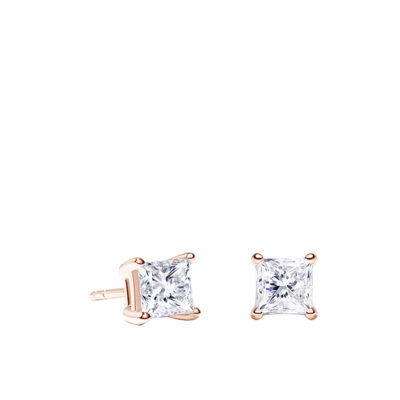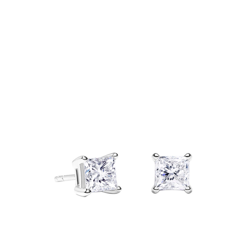 Classic stud earrings with lab created princess-cut diamonds are prong-set in. Glistening and refined appearance.