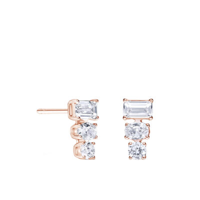 Kullast naelkõrvarõngad, mis sobivad nii argipäevaks kui ka erilisteks sündmusteks. Sellel mudelil on mitu erineva kujuga säravaid laboriteemante: emerald-kujuline (0.70 ct), ovaal (0.40 ct) ja ümmargune (0.20 ct).