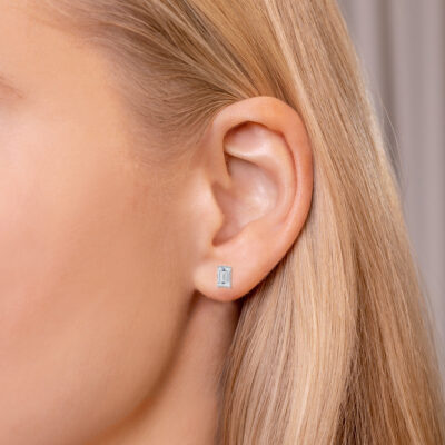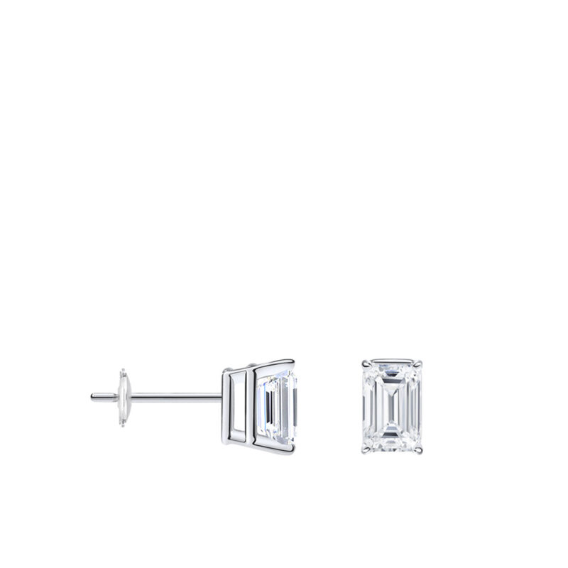 Klassikalised naelkõrvarõngad emerald-kujuliste laboriteemanditega.