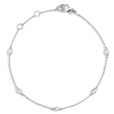 Jeanne käeketil särab 5 markiis-kujulist laboriteemanti kogukaaluga 0.50 ct
