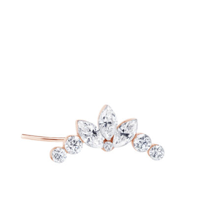 Üksik kullast naelkõrvarõngas, mida kaunistavad kolm säravat markiis-kujulist ja viis ümmargust laboriteemanti.