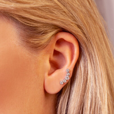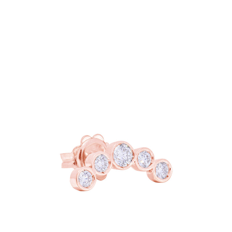Üksik kullast naelkõrvarõngas, mida kaunistavad viis säravat ümmargust laboriteemanti.