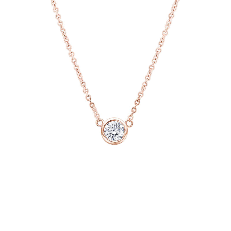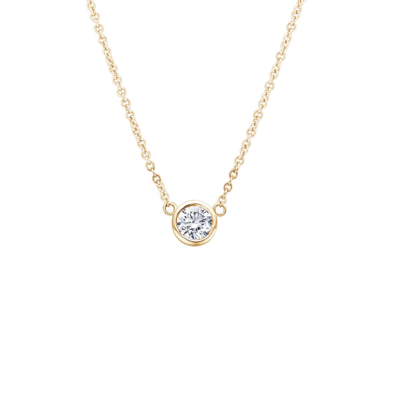Kaasaegne ja stiilne kaelaehe ümmarguse laboriteemandiga bezel kinnituses.