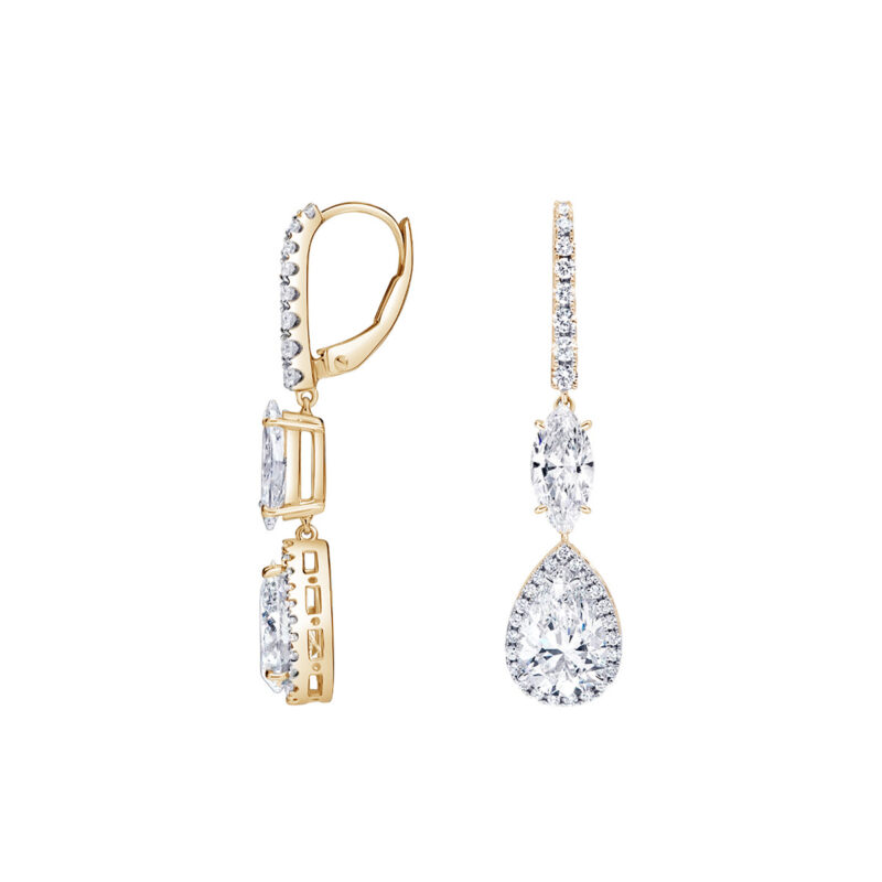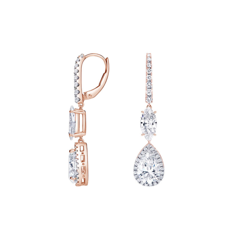 Jalustrabavad ripatskõrvarõngad imekaunitest laboris loodud teemantidest.